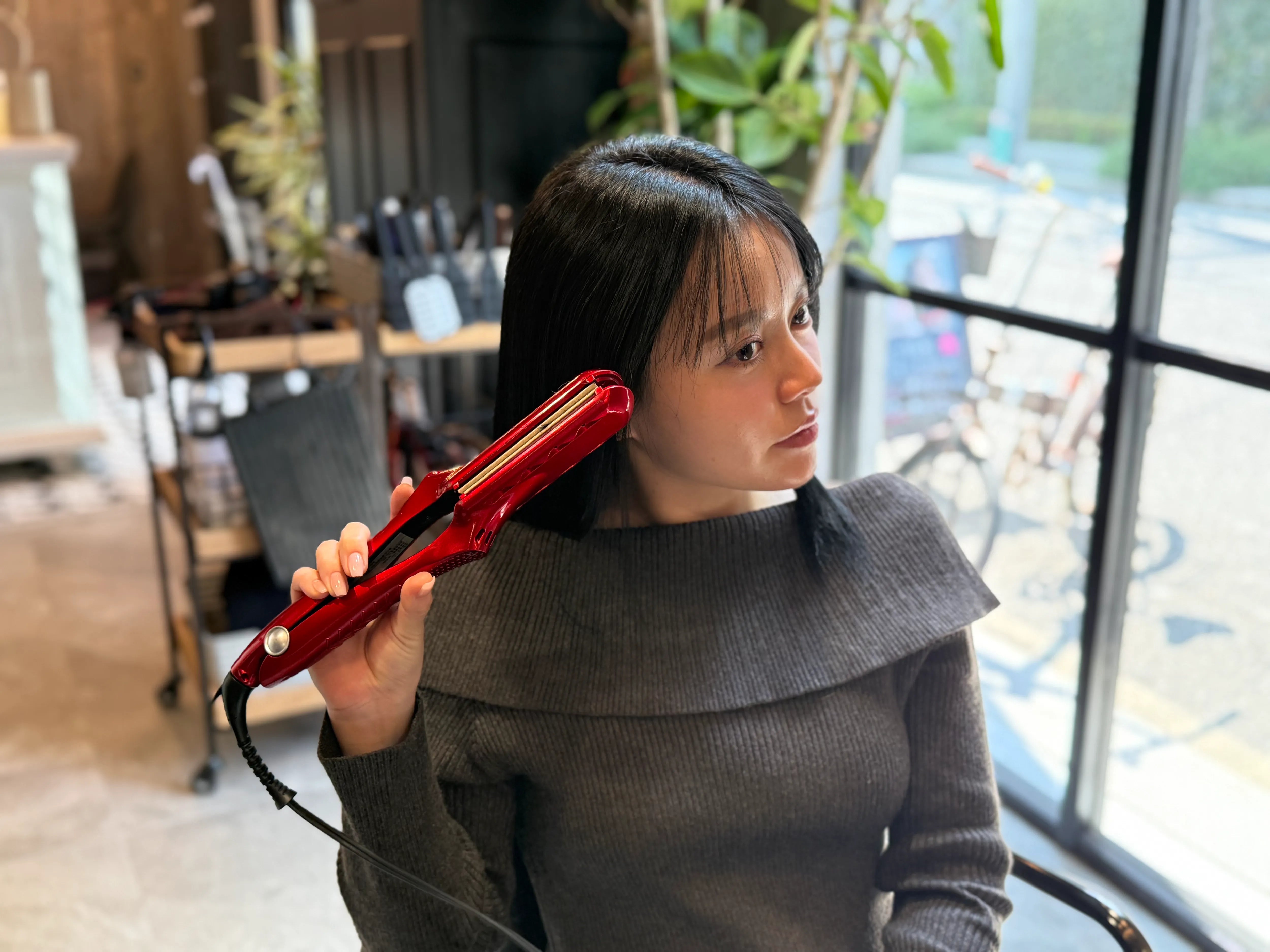 前髪は、他の部分と比べて、ダメージを受けやすいので、140℃前後の低めの温度で、優しく熱を当てることをおすすめします。様子を見ながら調整しましょう。