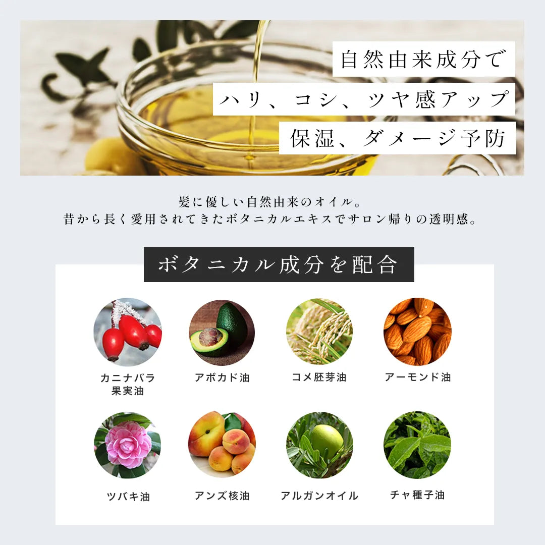| 配合成分 | シクロペンタシロキサン、ジメチコン、安息香酸アルキル(C12-15)、イソノナン酸エチルヘキシル、イソステアロイル加水分解ケラチン(羊毛)、イソステアロイル加水分解コラーゲン、ツバキ花エキス、ツバキ種子エキス、ツバキ種子油、チャ種子油、ヒマシ油、アルガニアスピノサ核油、アーモンド油、コメ胚芽油、アボカド油、アンズ核油、カニナバラ果実油、ユチャ種子油、(ジメチコン/ビニルジメチコン)クロスポリマー、イソステアリン酸、イソノナン酸イソノニル、香料 |