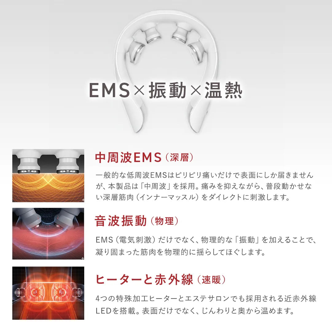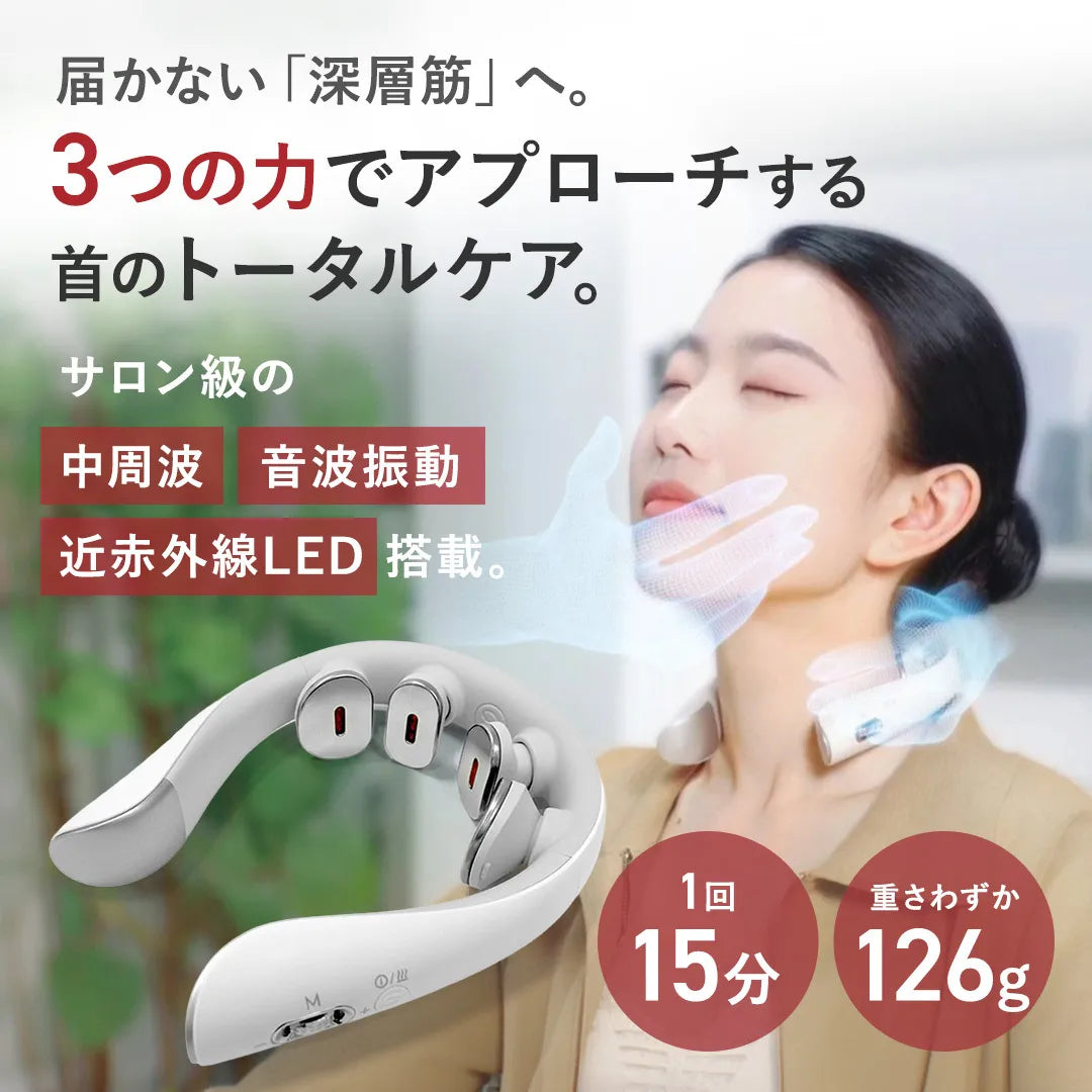 「EMS・温熱・音波振動・LED」4つの機能を組み合わせた首用EMS