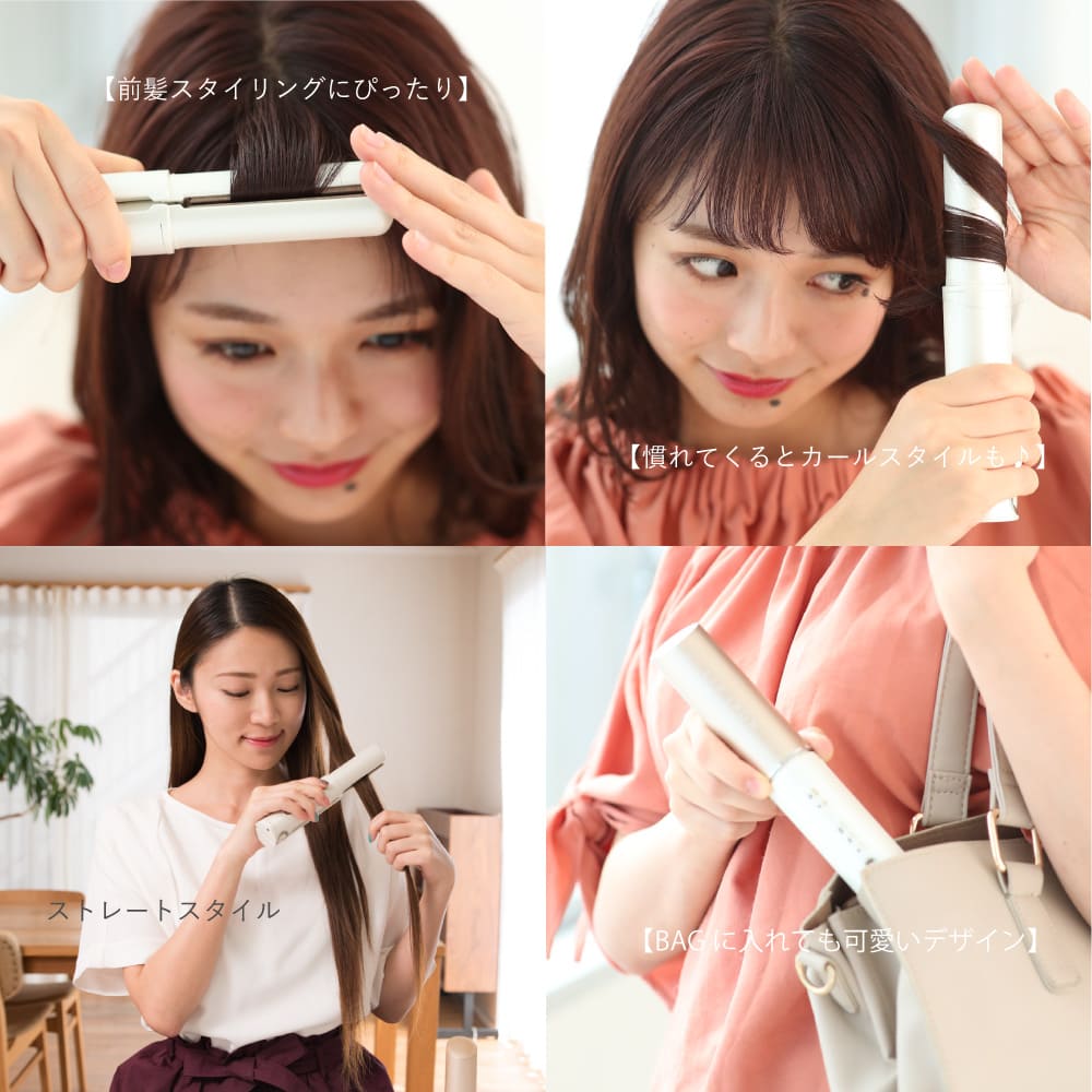 少量の毛束をゆっくりとスライドするとスタイリング長持ち。左右に動くプレートと丸みのあるヘッドで毛先のワンカールもキレイにまとまります。