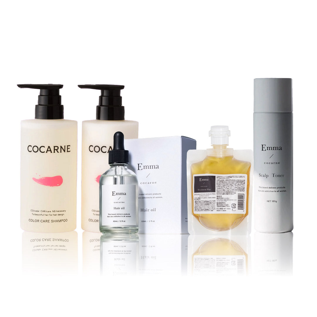| 内容量 | 【コカルネ】 ダメージケアシャンプー:400ml ダメージケアトリートメント:390g 【エマコッカーナ】 トリートメントプラス:100ml スキャルプトナー:180g ヘアオイル:60ml |