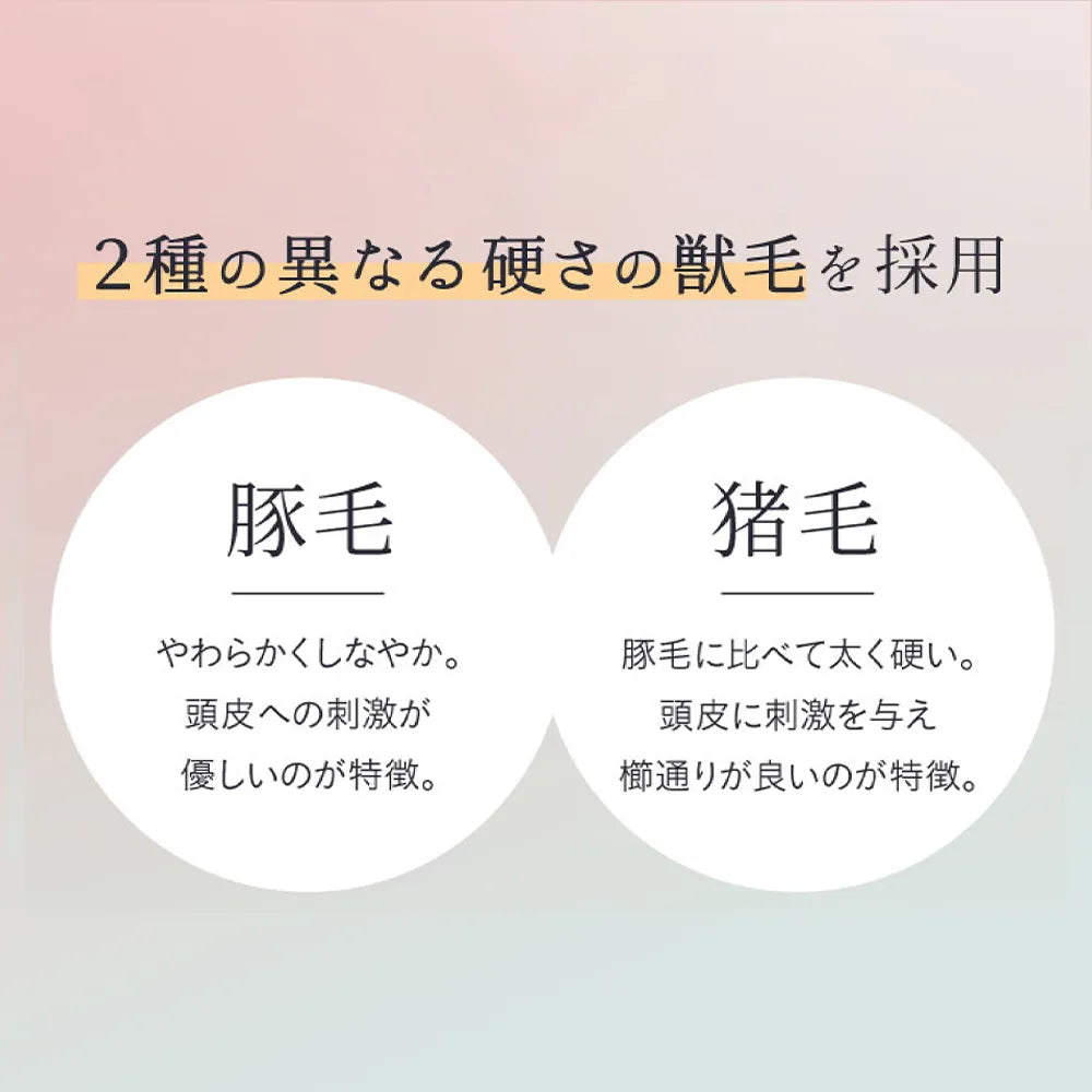 独自の植毛パターンが、髪をしっかりとキャッチしてクセを伸ばします。2種の天然毛使用で、使うたびまとまりのある髪へ。
