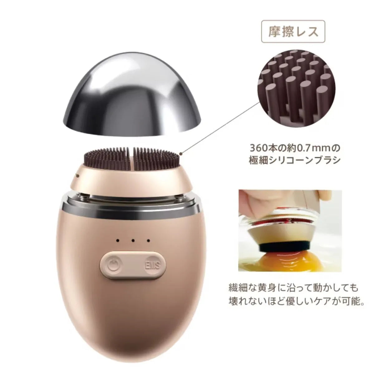 360本の極細シリコーンブラシでお肌のケアをします。卵の黄身に沿って動かしても壊れないほど優しいケアが可能です。