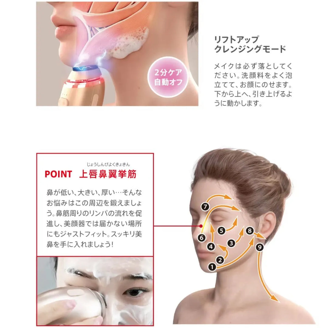 表情筋を気持ちよく刺激しながら音波振動で筋肉をほぐして老廃物を流すことが期待できるモード。