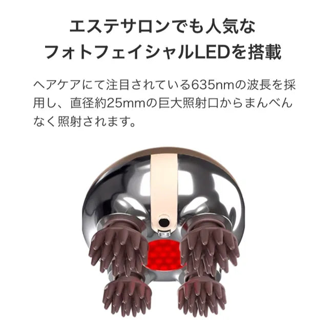 ヘアケアにて注目されている635nmの波長を採用し、直径約25mmの巨大照射口からまんべんなく照射されます。